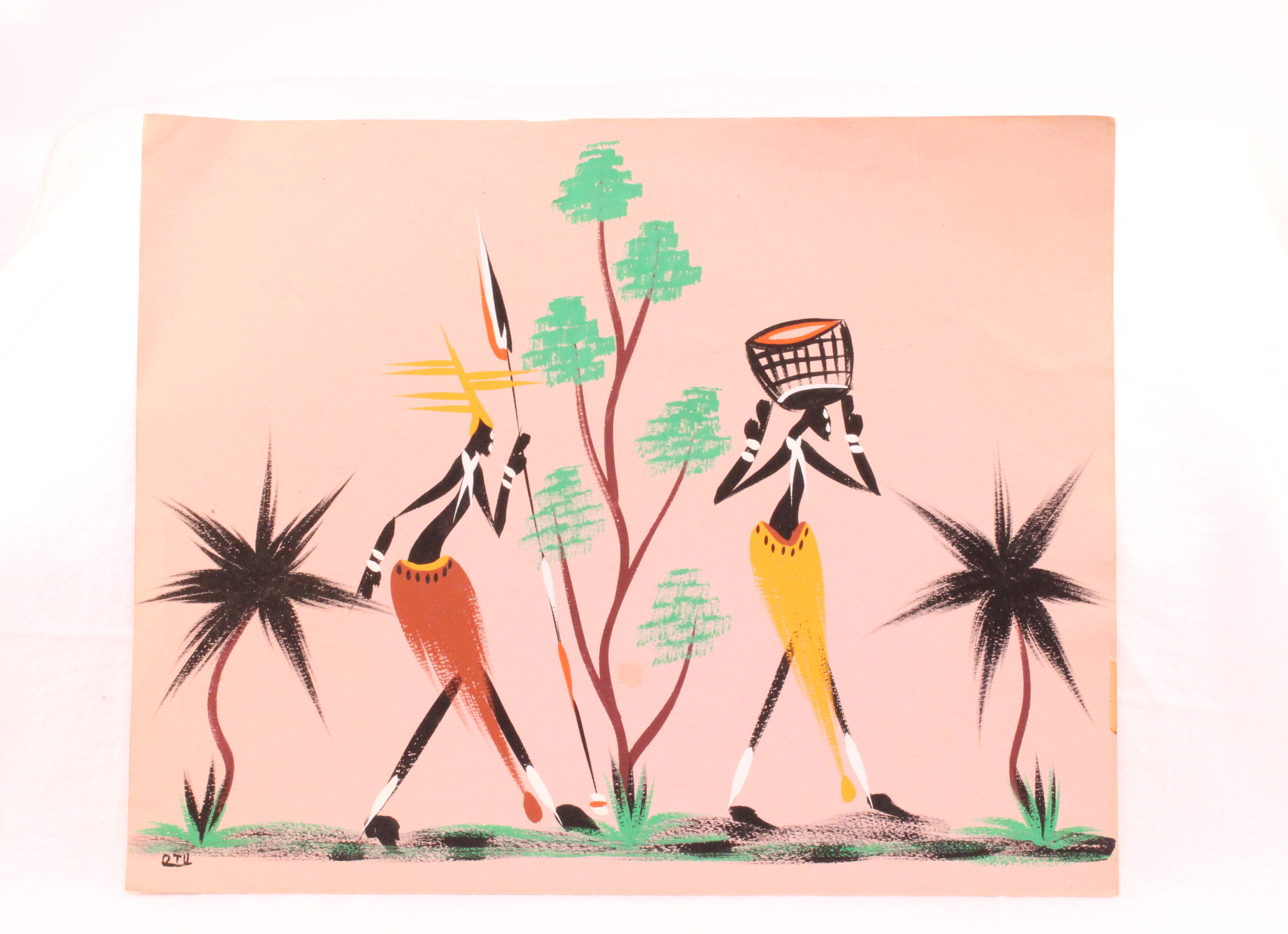 12x10 Enamel paint on colored canvas paper - light pink