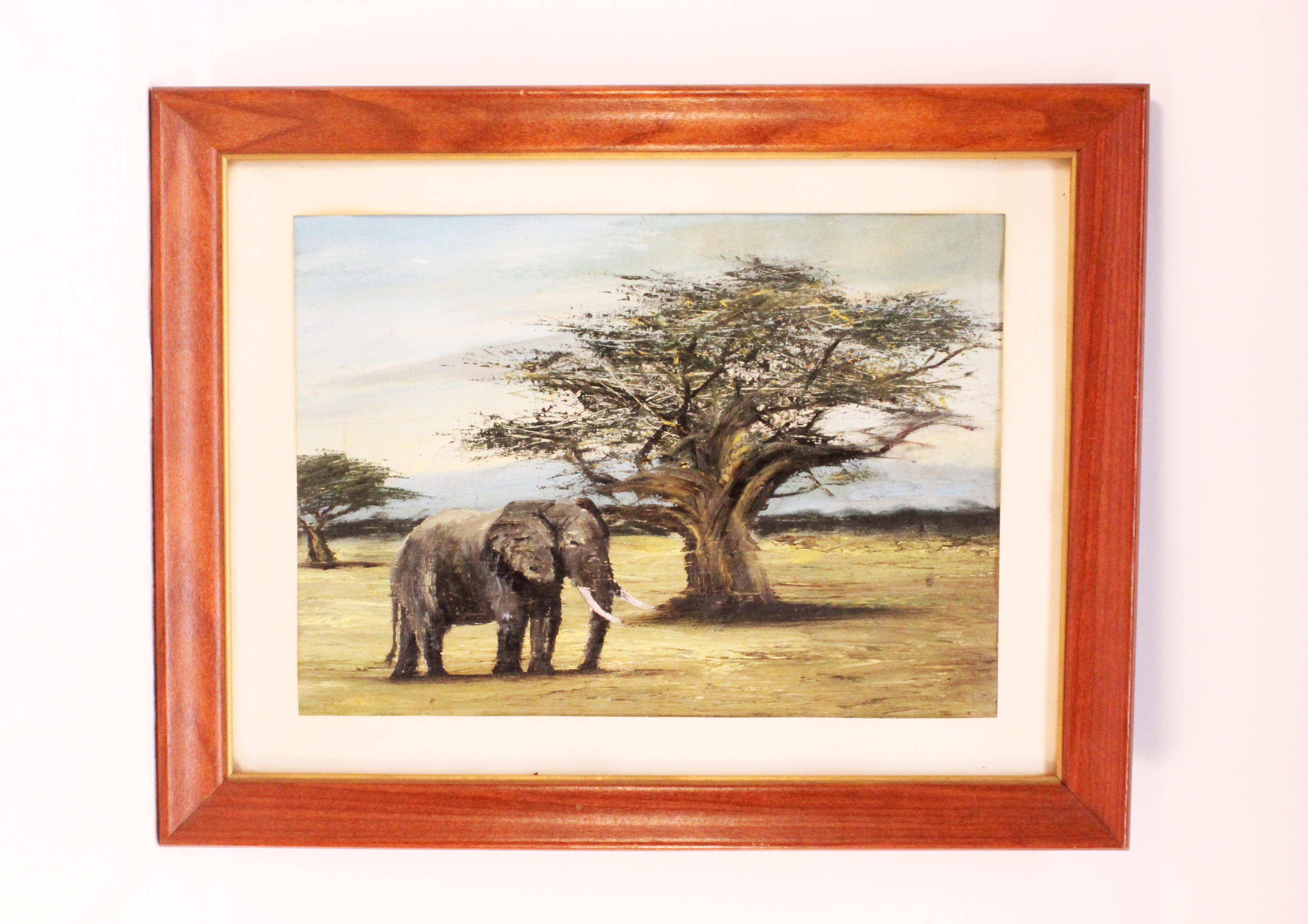 18x14 Oil on canvas matted and framed elephant - full view