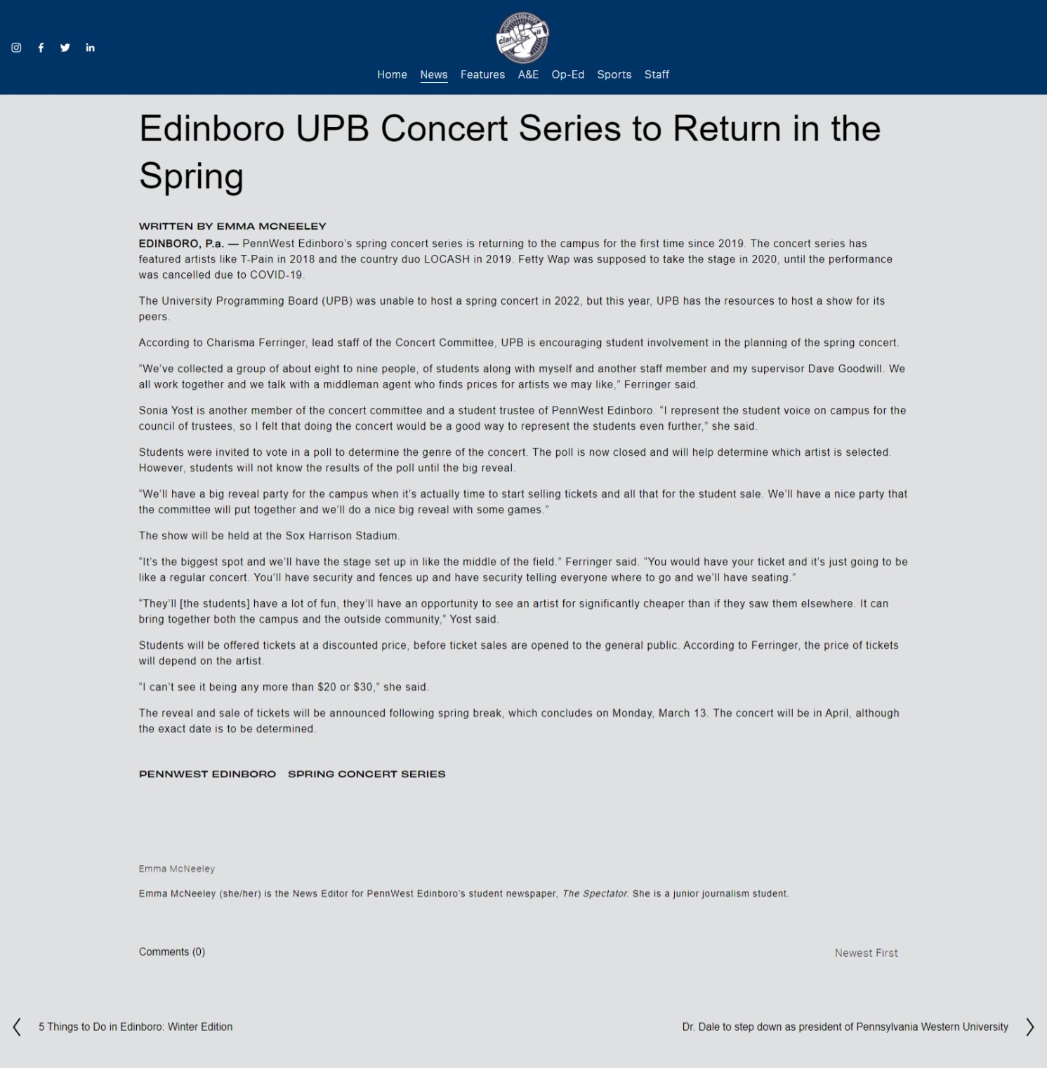 2023-02-20 Edinboro UPB Concert Series to Return in the Spring