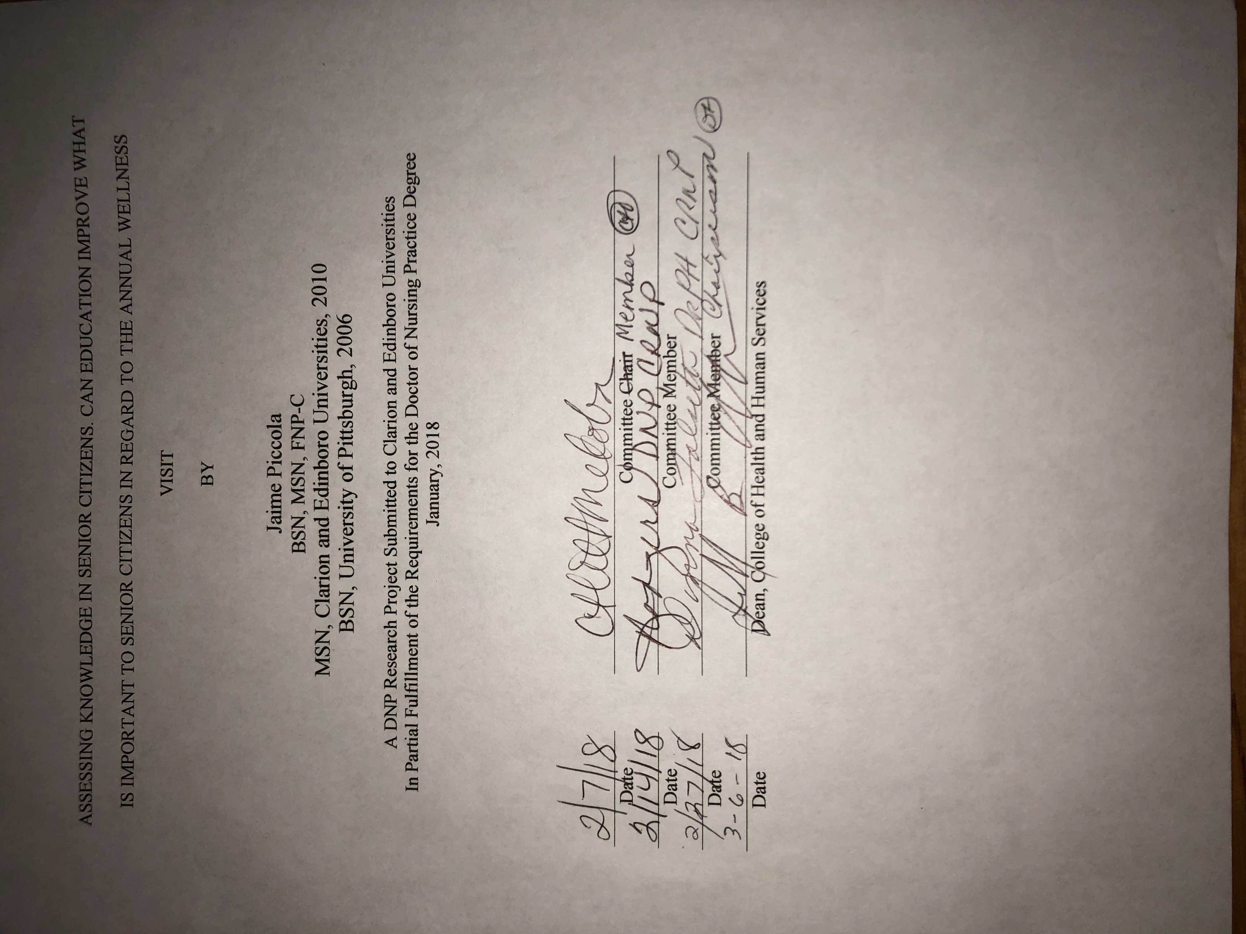 Assessing Knowledge in Senior Citizens Title Signature Page