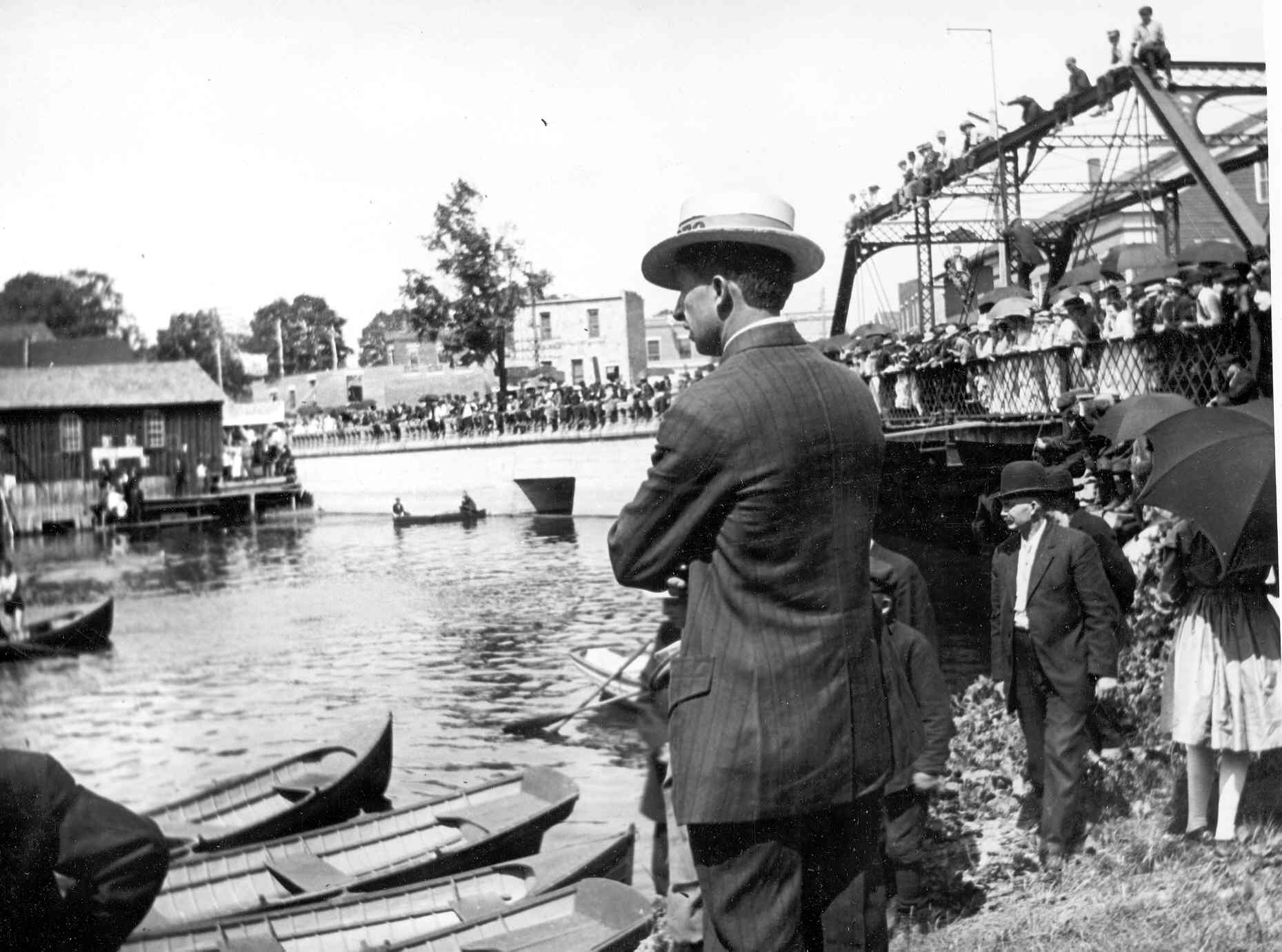 4th of July boat races at old mill bridge - blacksmith shop at left