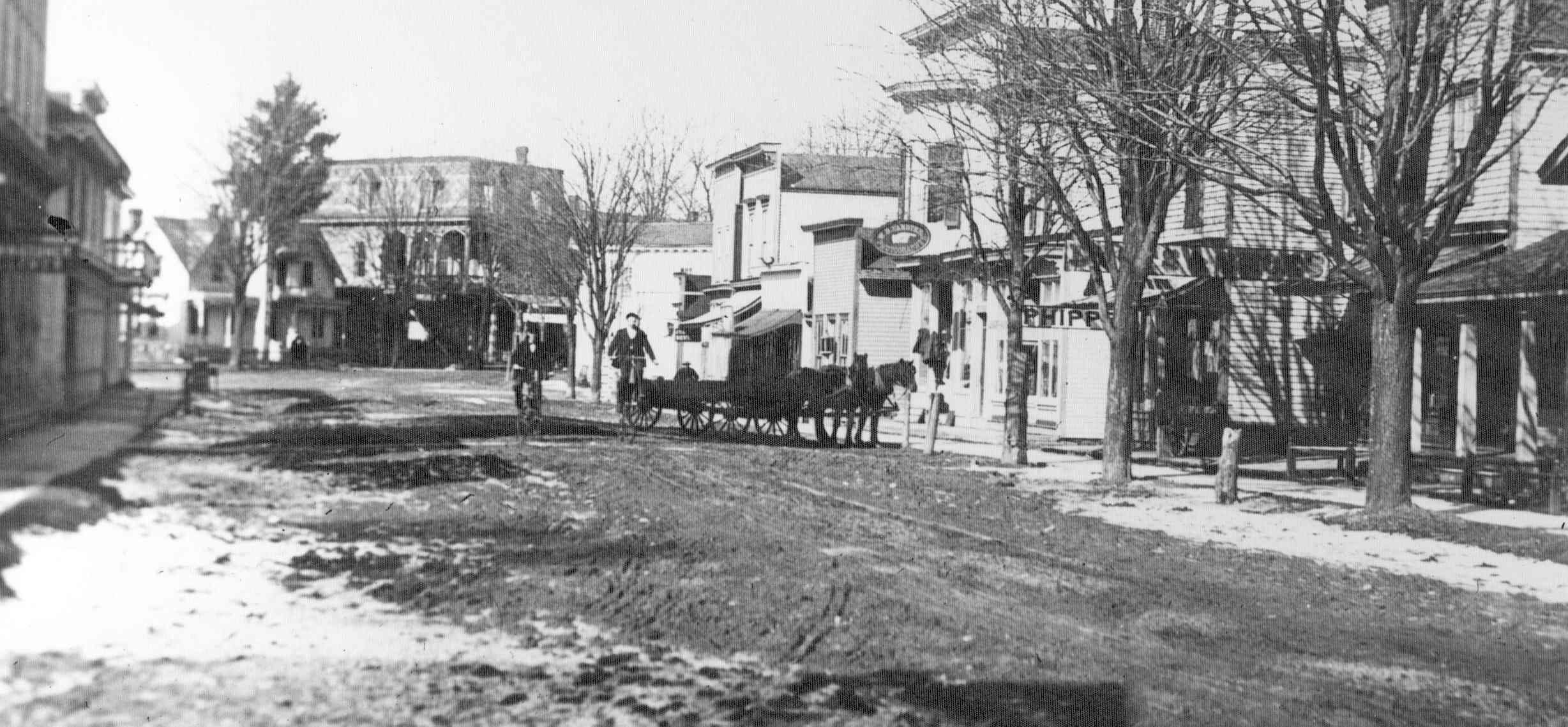 Meadville St. before 1895 in high wheel bicycle days