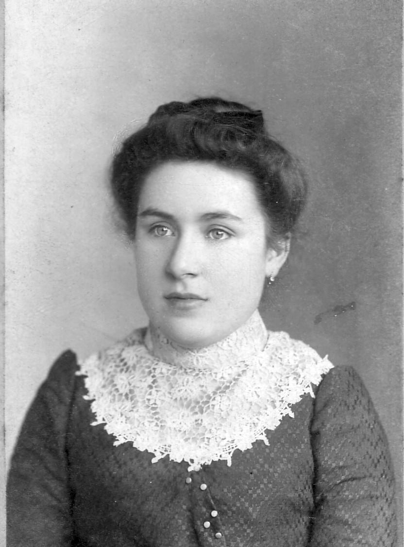 One (a) 7 X 9 cm black and white protrait photograph of Iva Wells glued on a cardstock frame. Written on the back is "Iva Wells." One (b) 5 X 9 cm photograph set in an oval cardstock frame. Written on the back is "Iva Wells."