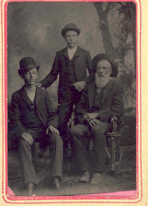 6 X 8 cm tintype. Portrait of Layton, Todd and Ned Goodell. Date identified on reverse as August 1, 1889.