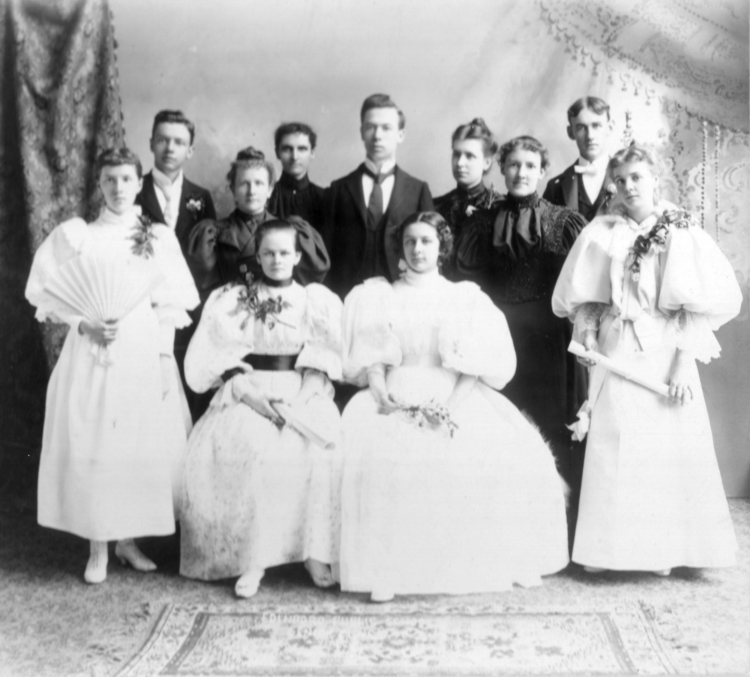8" X 10" black and white class photograph 1896. It is glude to a cardstock frame. Written on the back are the names of all the students, row by row. Ned Goodell is in the photograph, though by this time he would have been the teacher.