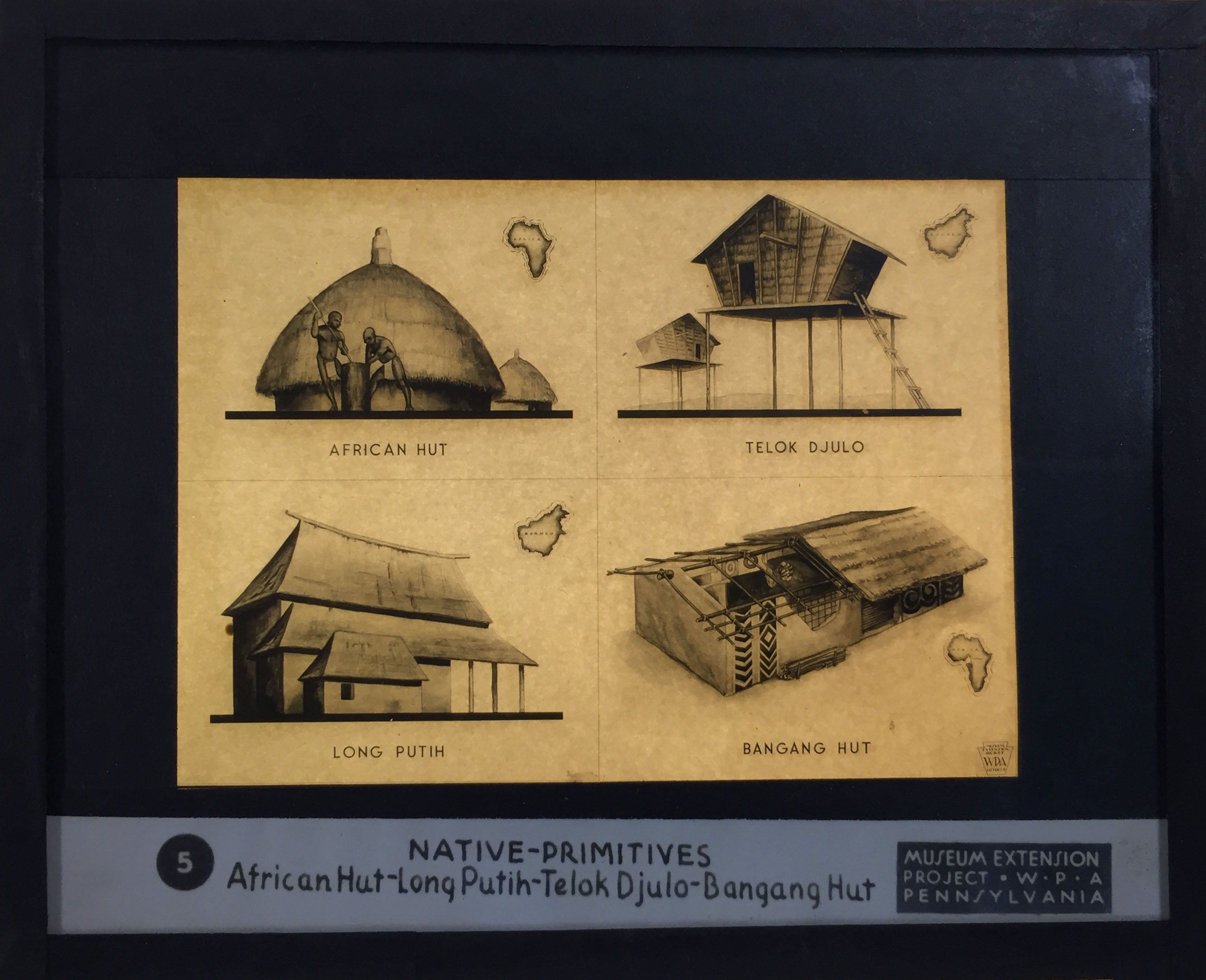 WPA Lantern Slide_Floor Plans_Plate 5 Native Primitives_African Hut_Long Putih_Telok Djulo_Bangang Hut