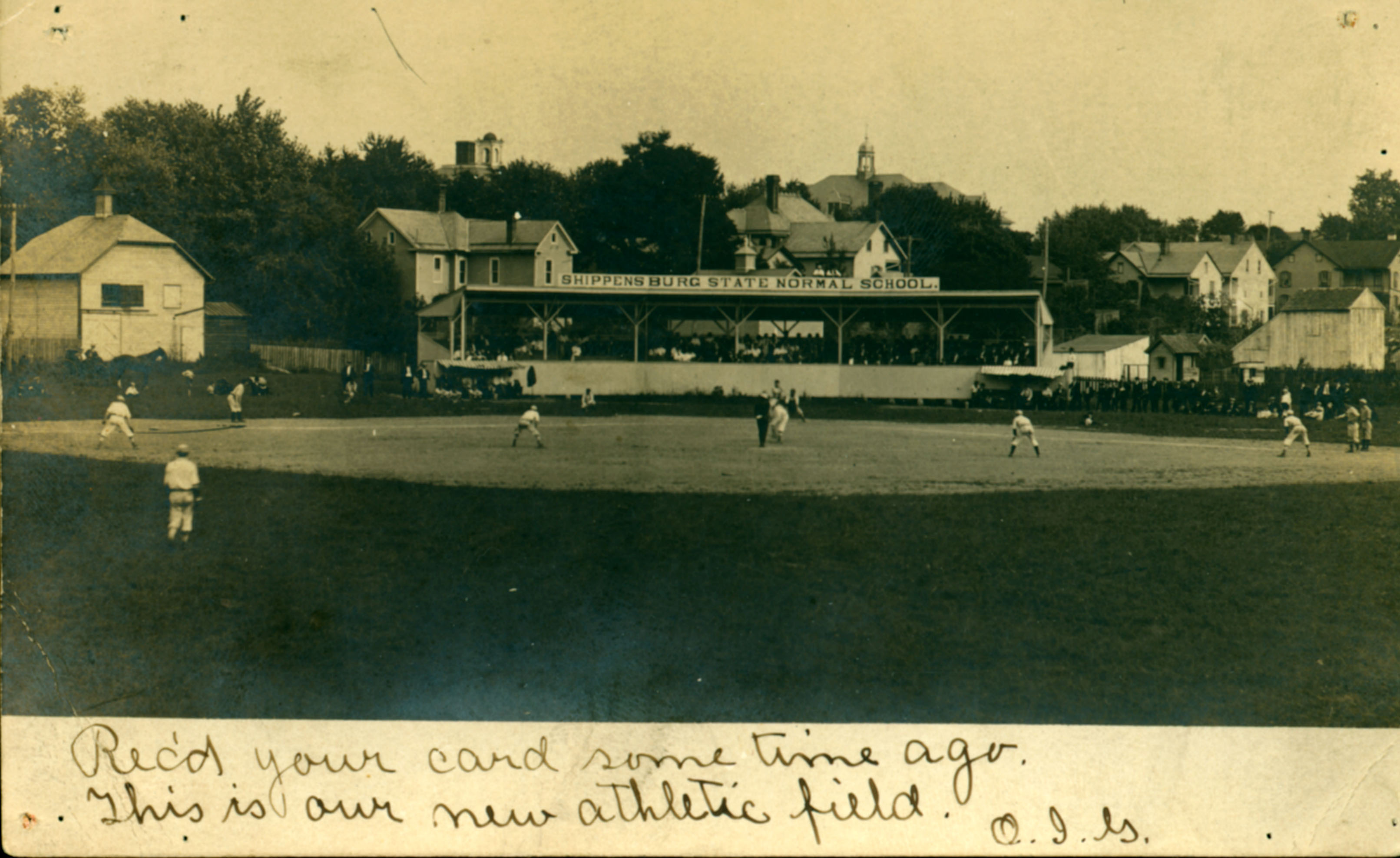 Postcard depicting baseball field. Message transcription:"Rec'd [received] your card some time ago. This is our new athletic field. O.L.G." Verso addressed to "Mr. John Grubb, Duncannon, Pa. R.F.D.[Rural Federal Delivery] 4."