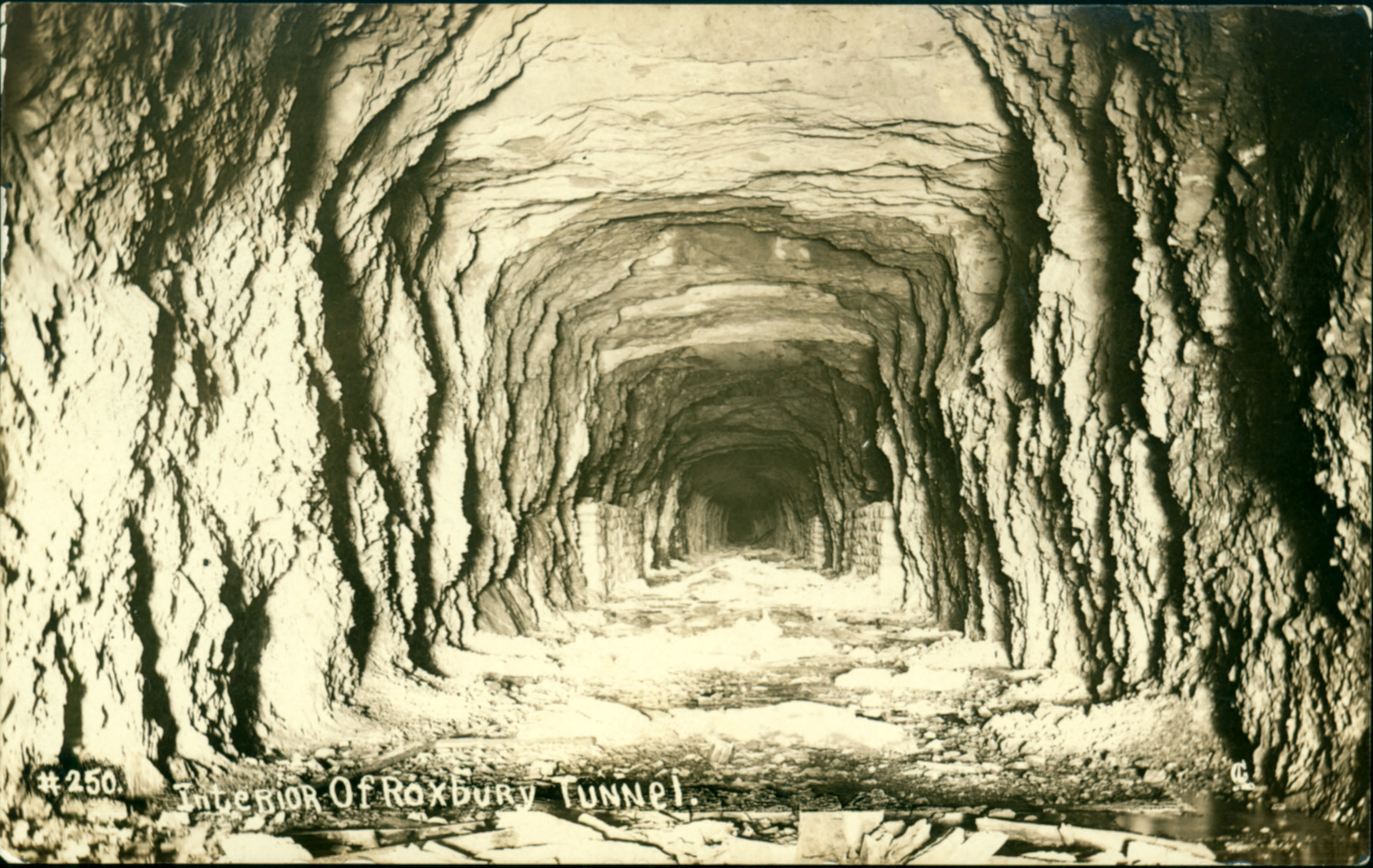 Postcard with caption "#250 Interior of Roxbury Tunnel"